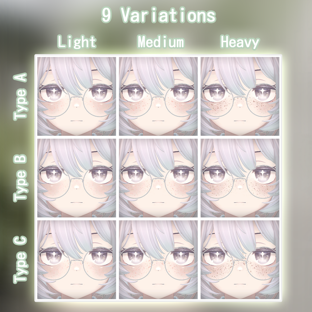 It includes 3 different freckle variations, each with three intensities, adding up to 9 different textures in total.